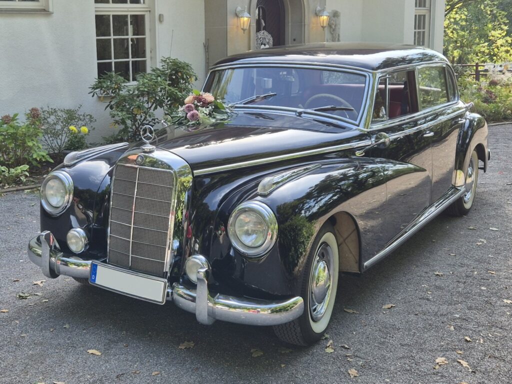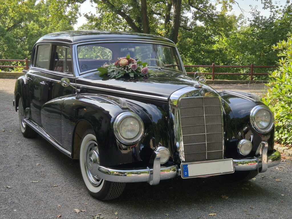 Als Leasing noch ein Fremdwort war, chauffierte er die Elite der jungen Bundesrepublik einschließlich des namensgebenden Bundeskanzlers: Der Mercedes-Benz 300. Die auf der IAA 1951 vorgestellte Limousine war seinerzeit der schnellste und stärkste Serienwagen Deutschlands. Während der sechsjährigen Bauzeit wurde der 300er mehrfach überarbeitet: Neben mehr Leistung, verbesserten Bremsen und einem optionalen Automatik gab es ab 1956 eine verlängerte Version mit mehr Beinfreiheit hinten. Der Sechszylinder mit drei Litern Hubraum leistete 125 PS. Damit waren bis zu 163 km/h drin – seinerzeit ein utopischer Wert. Der Bundeskanzler der Wirtschaftswunder-Republik machte deren nobelste Limousine unsterblich: Der auto-affine Konrad Adenauer wählte das Stuttgarter Spitzenmodell als Dienstwagen. Schon deshalb fand der 300 als „Adenauer Mercedes“ ins automobile Geschichtsbuch. Dieser Mercedes Benz 300 ist einer der wenigen mit dem verlängerten Radstand ursprünglich in die USA, nach Kalifornien ausgeliefert. Er fand dann seinen Weg wieder zurück nach Deutschland wo er liebevoll restauriert wurde. Nun ist dieser Mercedes Benz wieder voll einsatzbereit und steht bereit Ihnen einen unvergesslichen Tag zu bereiten. Selbstverständlich wird dieses einmalige Automobil mit Chauffeur vergeben damit die Gäste den Tag unbeschwert genießen können. In diesem Fahrzeug der absoluten automobilen Oberklasse hört man bei der Fahrt nur das sprichwörtliche ticken der Uhr.